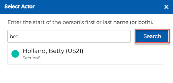 9. Choose the user you want to nominate as the actor by searching for them in the Popup Modal.