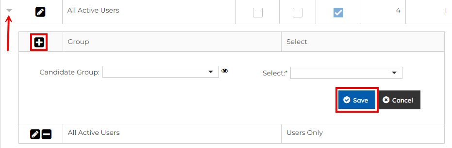 - Candidate Group = Select a group by typing part of the group name into the Candidate Group box.