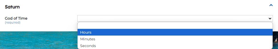 Single Select List – Drop Down – Allows a single selection from a defined list of values. The defined list of values is configured in the ‘Values’ setting. Enter each value as a separate line. Displays the options as a drop-down list.