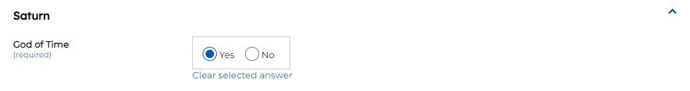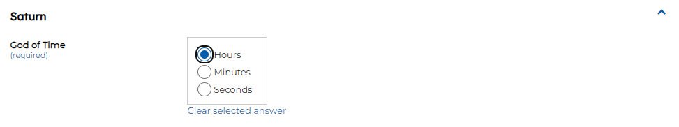 Single Select List – Radio – Allows a single selection from a defined list of values. The defined list of values is configured in the ‘Values’ setting. Enter each value as a separate line. Displays the options as radio buttons.