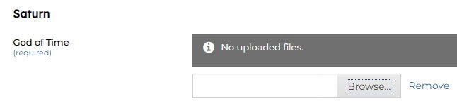 File Upload – Allows a file to be uploaded. Can be configured to allow a file upload via a users browser, pasting an image from the clipboard, or both.