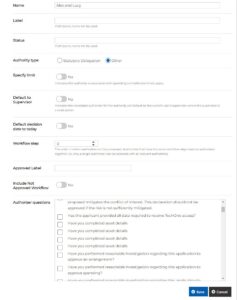 - 2 – Label – Label to be used for the authority in the workflow section of a custom form. If left blank the Name will be used.