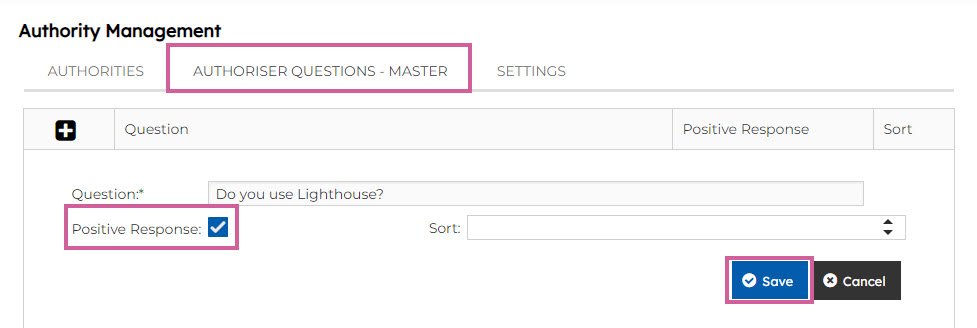 - 11 – Authoriser Questions – The questions the authoriser must answer when exercising their authority, if required. Selected from the Authority Question Master list.