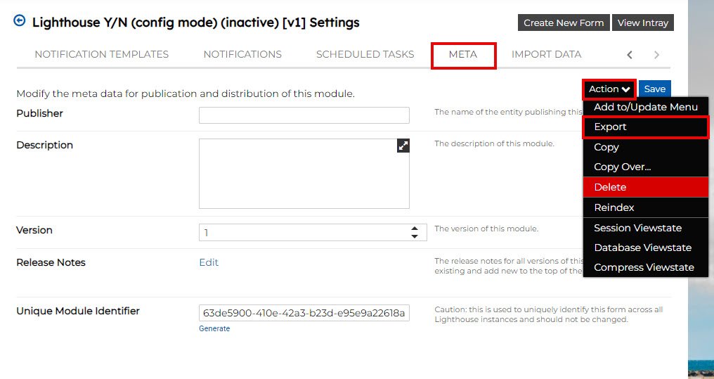 13. After importing the file back into your live instance, while you are in the ‘Meta Tab’ ensure the Unique Module Identifier is the same in the live instance and the other instance.